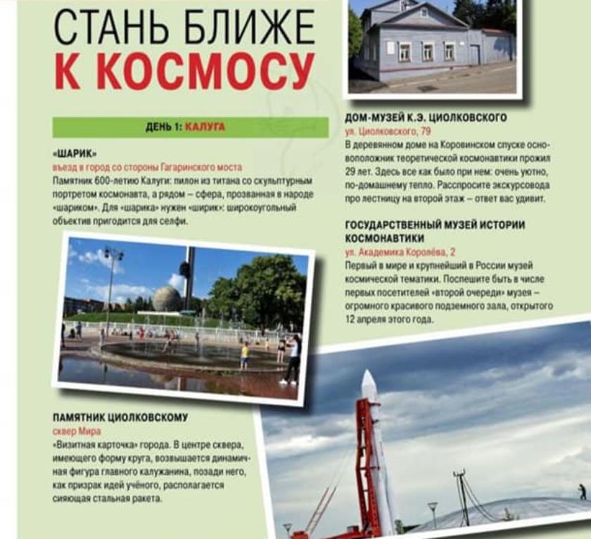 "Приятная новость! В апрельском номере National Geographic Россия приняли участие коллеги Татьяна Каледина (материал "Стань ближе к КОСМОСУ"), Елена Французова ("Такой человечный космос"), Алёна Кочеткова, Мария Соколова, есть и мой скромный вклад к юбилею. Хочу выразить благодарность Агентству по развитию туризма Калужской области, журналу National Geographic Россия и всем причастным к апрельскому номеру журнала! Ура!", — поделился на своей странице в Фейсбуке Георгий Орлов.
