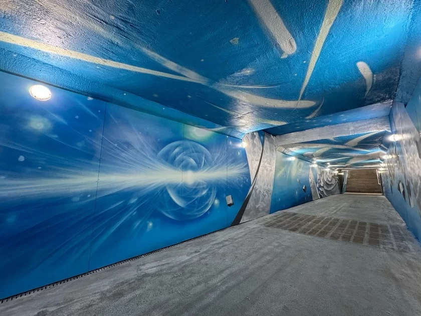 Первым арт-объектом, созданным в рамках фестиваля, стал подземный пешеходный переход в Обнинске. Художник Деонис Текко, ранее расписавший калужскую «подземку», оформил переход наукограда в тематике мирного атома. Один из рисунков был вдохновлён памятником первопроходцам атомной энергетики, знакомым всем обнинцам. Работа ещё идёт – стены вестибюля, ведущего к микрорайону «Посёлок Обнинское», будут завершены к концу месяца. В настоящее время открыт обновлённый выход к ж/д станции.