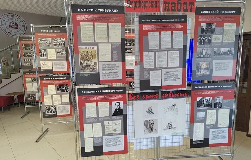 На выставке представлено 30 планшетов, содержащих фотографии, рисунки, копии документов Нюрнбергского трибунала и исторический материал о преступлениях нацистов на территории Калужского края.