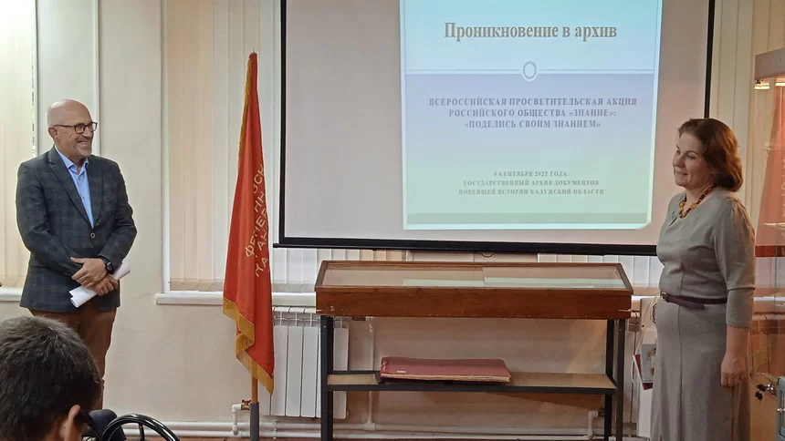 Во встрече приняли участие учителя истории калужских школ, директор архива Петр Симоненко, начальник областного управления по делам архивов области Майя Добычина, председатель Калужского регионального отделения общества «Знание» Татьяна Артёмова.
