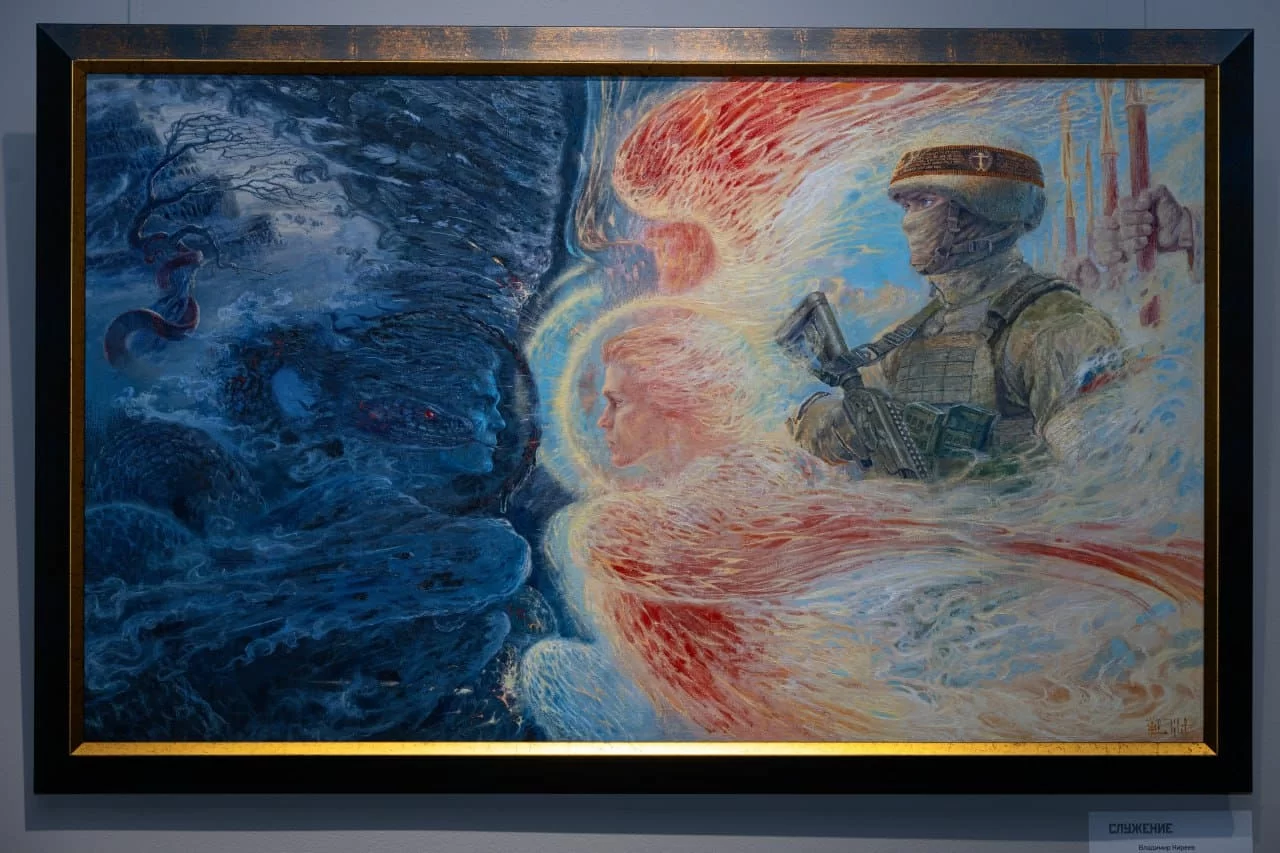 «»«Практически на всех моих картинах идет борьба добра и зла. Название одной из них – «Георгий Победоносец. Вечная борьба и вечная победа». Она стала символом серии исторической живописи, которую я назвал «Служение России. От древнего мира до наших дней». Георгий Победоносец – воин и христианский святой – сакральная фигура вечной победы», - поделился Владимир Киреев, член Союза художников России, выпускник Академии живописи, ваяния и зодчества Ильи Глазунова.