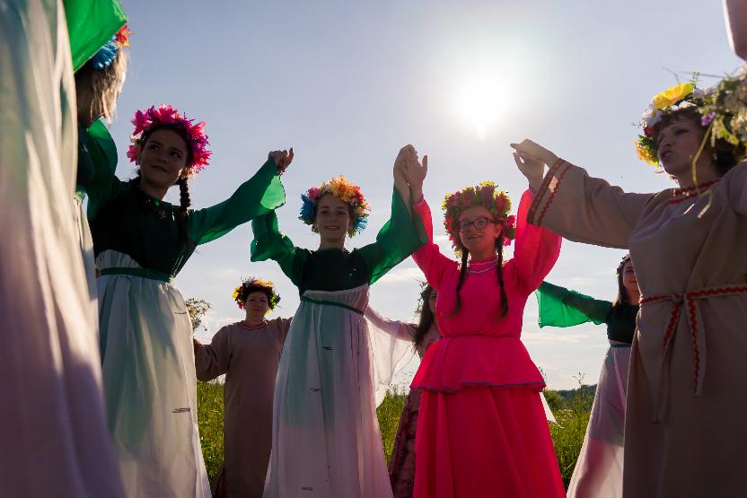 На исходе дня парни и девушки вышли в поле провожать красное солнышко. Яркие наряды участников дополняли общую картину красоты природы. Русские песни, хороводы, плетение венков из полевых цветов, все это создавало атмосферу умиротворенности.