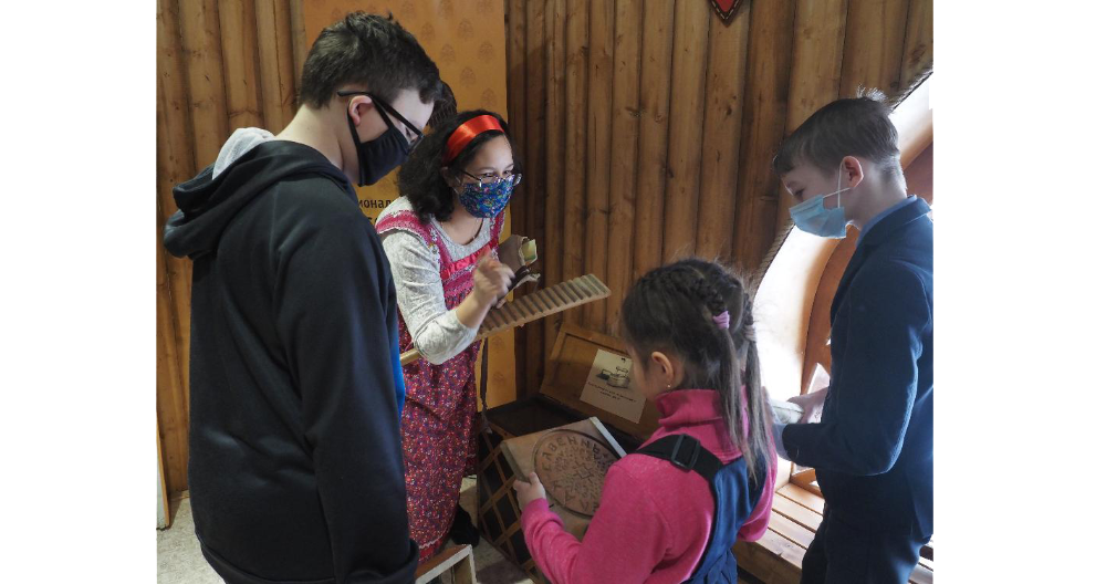 Детская интерактивная экспозиция делится на две части – для мальчиков и девочек, как и любой дом в XV – XVII веках, где соответственно были мужская и женская половины. В «женском» уголке зала находятся прялка и пяльцы. На мастер-классах здесь расскажут о видах рукоделия, о том, как вели хозяйство на Руси. Тогда женщины занимались вышивкой, прядением, ткачеством. Девочек учили такому труду с раннего возраста, первую прялку отец дарил дочери в пять лет. Тогда же она начинала готовить себе приданое. В этом ей помогали мать, сестры и бабушка. Интересный факт, жених во время свадебного торжества одаривал подарками не только родню невесты, но также будущей жене преподносил новую прялку, при этом ломал старую. Это говорило о том, что девушка вступила в брак и жизнь для нее обрела новый смысл.