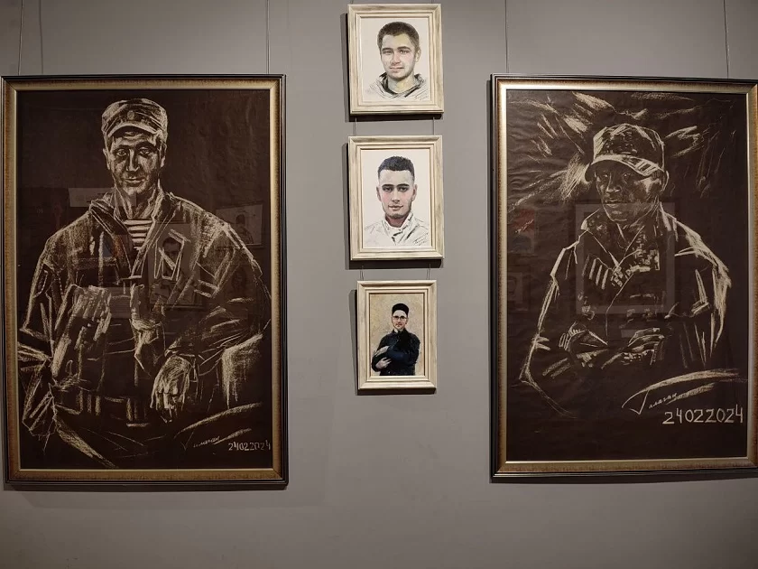 «» «Помимо рисования Светлана Борисовна занималась благотворительностью, старалась поддержать раненых бойцов морально, проводила мастер-классы по рисованию», - говорит куратор выставки Марина Зверева.В экспозиции находятся портреты наших земляков, погибших при выполнении боевых задач на полях сражений, Владимира Игнатова, Олега Колесникова, Павла Старченкова, Аслама Файзиева. В лицах ребят чувствуется внутреннее благородство, они с готовностью встали на защиту Родины на помощь тем, кто в ней нуждался, отдав за это жизнь.