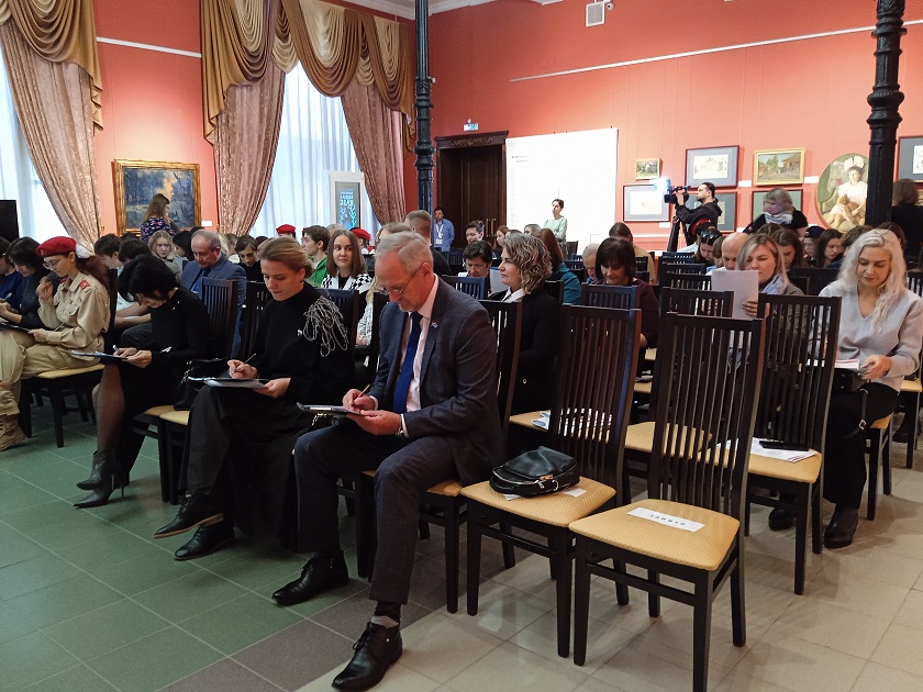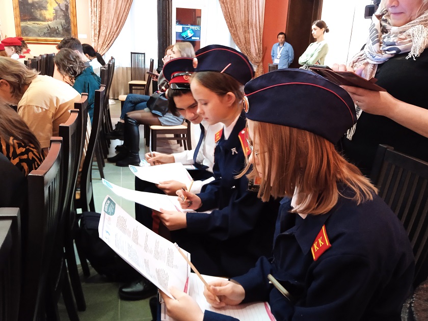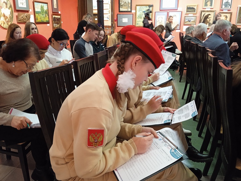 Калужская область не первый раз принимает участие в этнографическом диктанте. Его пишут с 3 по 8 ноября на 123 площадках, в очном и заочном формате. В числе мест, где проходит диктант, – Калужский музей изобразительных искусств. Сегодня здесь собрались более 60 человек – старшеклассники, студенты, а также депутат Государственной Думы РФ Ольга Коробова, депутаты регионального парламента, представители органов исполнительной власти, руководители национально-культурных объединений. Им предлагалось ответить на 30 вопросов, 10 из которых индивидуальны для каждого региона, в частности, были вопросы об истории нашего края.
