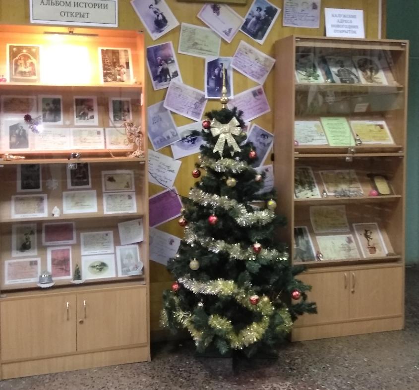 Экспонаты – рождественские и новогодние открытки с калужскими адресами – размещены в холле. Ознакомиться с ними может любой желающий, в том числе