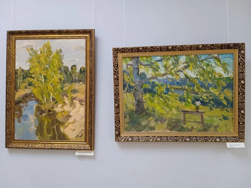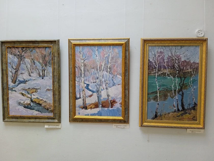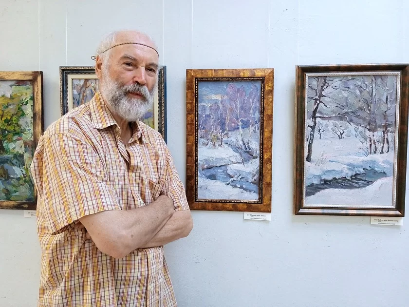 В его картинах оживает природа родного края. На одних – тонкие штрихи превращаются в зимний лес, речку, березы в пелене инея, чуть подсвеченные солнцем. На других – пейзаж, написанный мощно, широкими мазками. В нем чувствуется глубина осени с буйством ее красок.