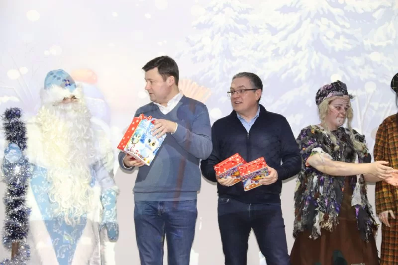 Студенты придумали и показали спектакль, собранный из разных сказочных сюжетов, а также вручили подарки детям из Курской области, проживающим в пункте временного размещения. В качестве гостей на мероприятии побывали городской голова Дмитрий Денисов и глава городского самоуправления Юрий Моисеев.