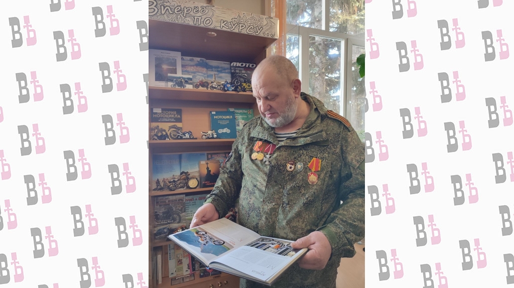 Одним из первых посетителей выставки «Вперед по курсу» стал боец с позывным «Росомаха», кавалер ордена Мужества. Он рассказал, что участвует в СВО с 2022 года. Сейчас проходит реабилитацию после ранения и решил посетить библиотеку.