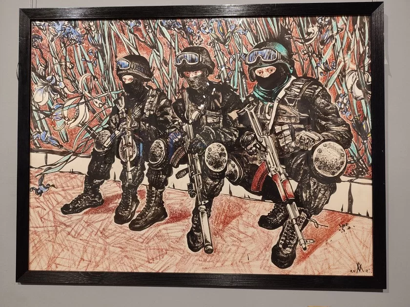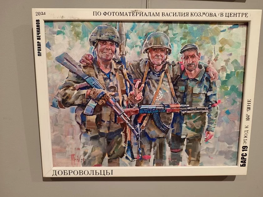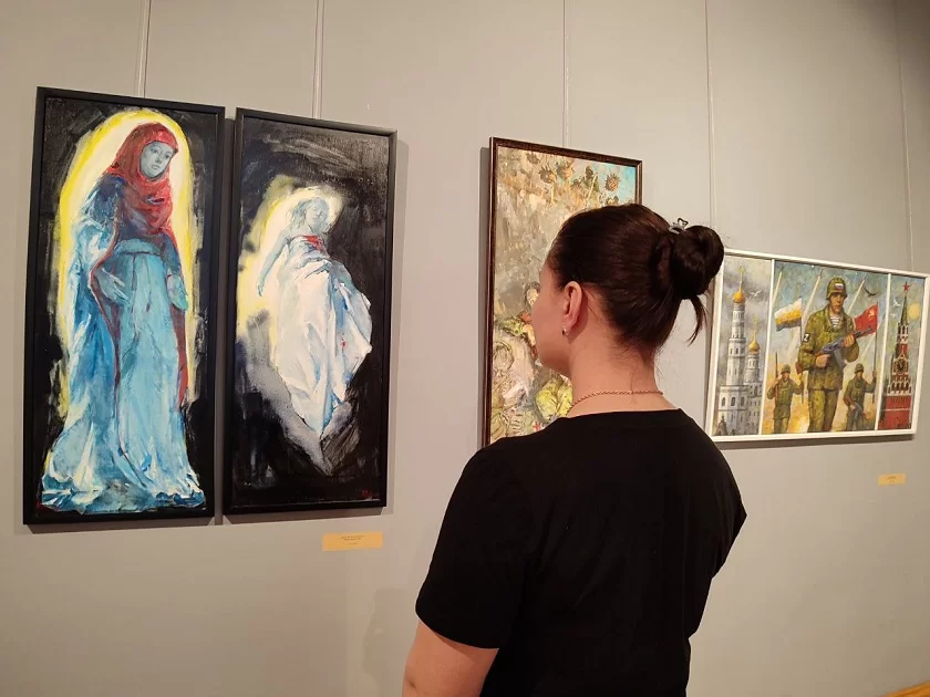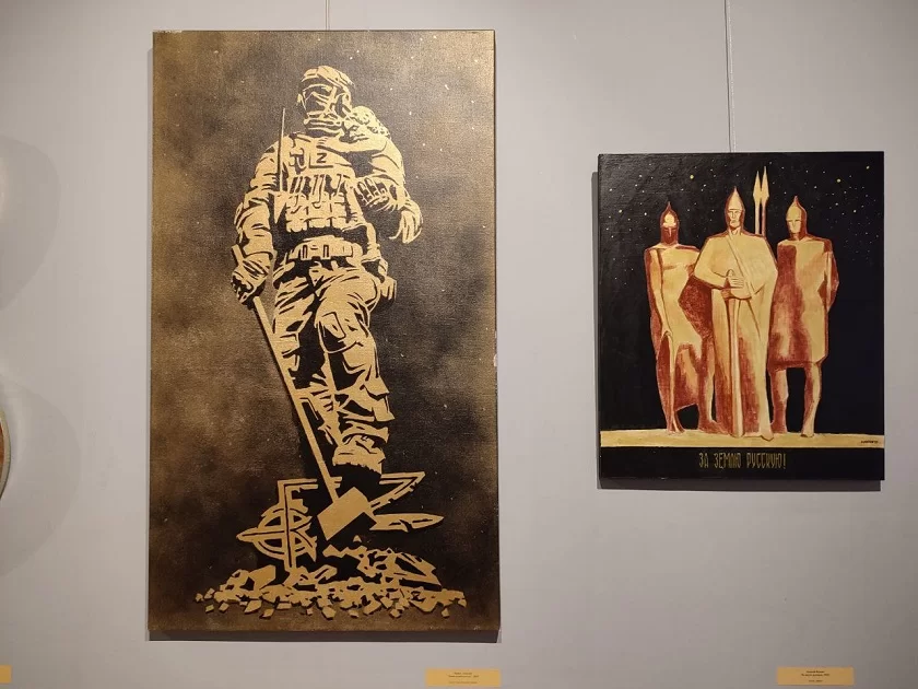 «» «В Калуге проходит седьмая выставка проекта, инициатором которого является Александр Сигалов. Перед этим она была показана в нашем филиале – в Тарусской картинной галерее и настолько понравилась посетителям, что мы решили привезти ее к нам. Выставка объединила работы разных художников – народных, заслуженных, молодых. И у каждого из них тема СВО отзывается по-своему – кто-то пишет особенно реалистичные произведения, кто-то отражает события в полуабстрактных картинах, которые нужно понять, поэтому экспозиция очень разнообразная, но передающая дух специальной операции», - говорит Екатерина Соловьева, заведующая научно-просветительским отделом музея.Есть в экспозиции и работа калужан – модель памятника героям СВО скульпторов Алины Фарниевой и Алексея Комова, который в недавнем прошлом был главным архитектором Калуги.