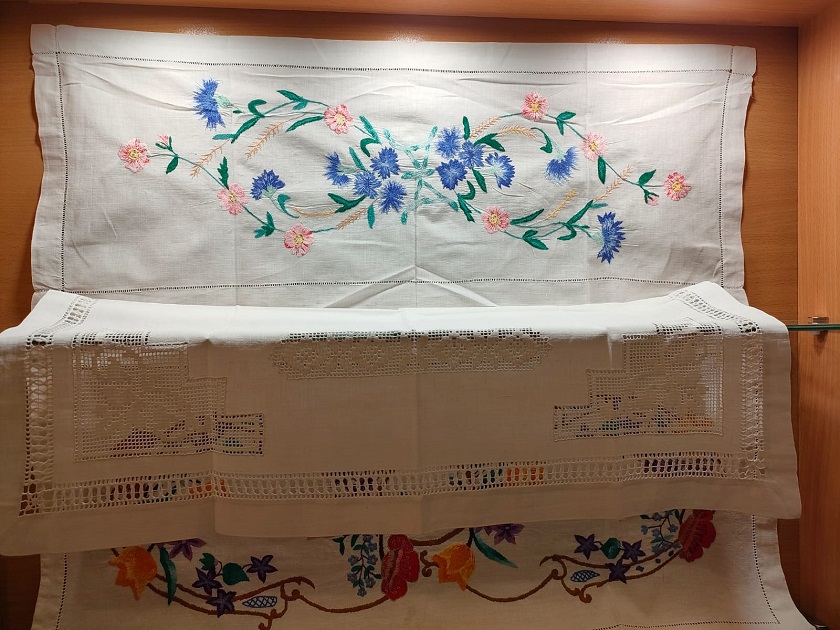 «Все начиналось с 1875 года. Мои предки тогда жили в Воронежской губернии. Руками моих бабушек и прабабушек вышивались скатерти, подзоры и рушники – полотенца, которые было принято дарить на свадьбу или к рождению в семье новых ее членов... В дальнейшем вышивальное ремесло развивалось уже на Калужской земле. Здесь им занимались представительницы нашего рода – Марфа Иосифовна Ванечкина и Анна Николаевна Лобанова», - рассказала Евгения Шапина.
