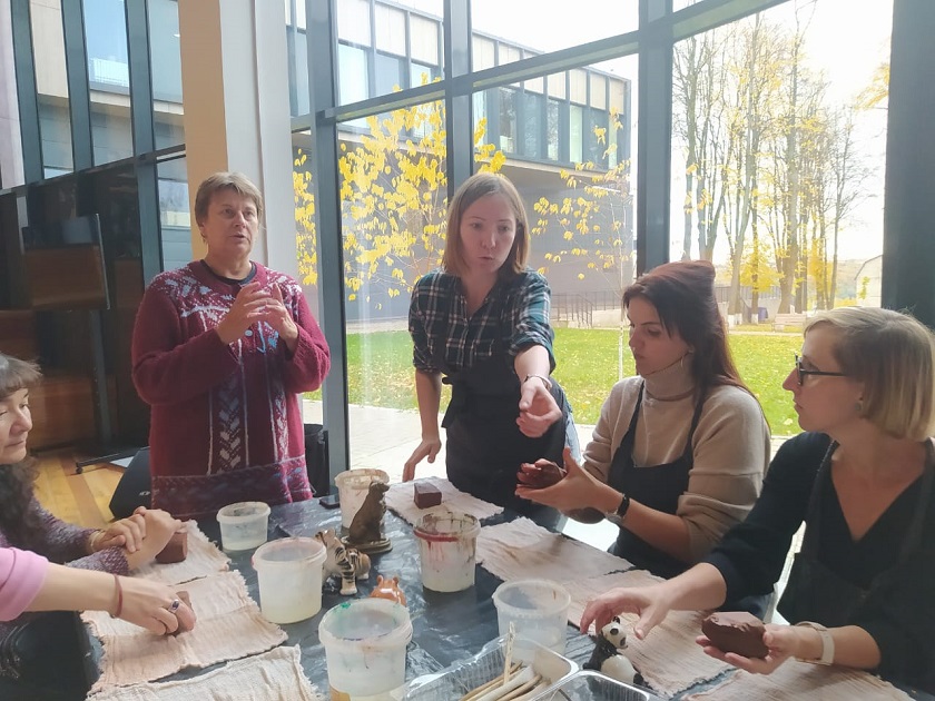 В сегодняшних мастер-классах творчески настроенные калужане смогли попробовать свои силы в создании деревянного 3D-панно под руководством Карины Саитовой и слепить из глины тигра, барсука, собаку или слона в анималистическом уроке Светланы Фарниевой.