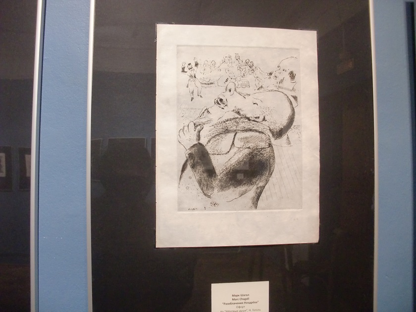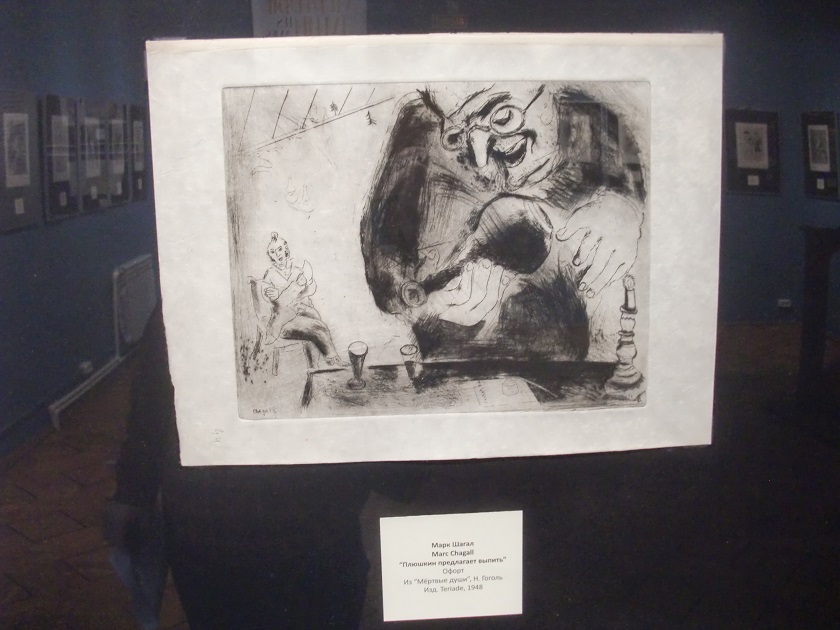 - рассказывает старший научный сотрудник экспозиционно-выставочного отдела музея Ирина Гужова.Как отметила Ирина Витальевна, уже в то время Шагал был известным мастером, который по собственному желанию мог выбрать, над чем работать. Свой выбор он остановил на иллюстрациях к поэме Гоголя «Мертвые души». Эмигрировав из России во Францию в 1922 году, Шагал скучал по родному Витебску, поэтому старался передать образы города в своих произведениях, которые, кстати, были выполнены по заказу издателя Амбруаза Воллара. Это стало началом творческого пути художника-авангардиста.