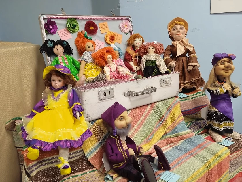 Экспозиция разместилась в Доме народного творчества и кино «Центральный». Это несколько витрин кукол, выполненных в разных техниках и направлениях мастерами со всей области, а также из Москвы и г. Первомайска (ЛНР).