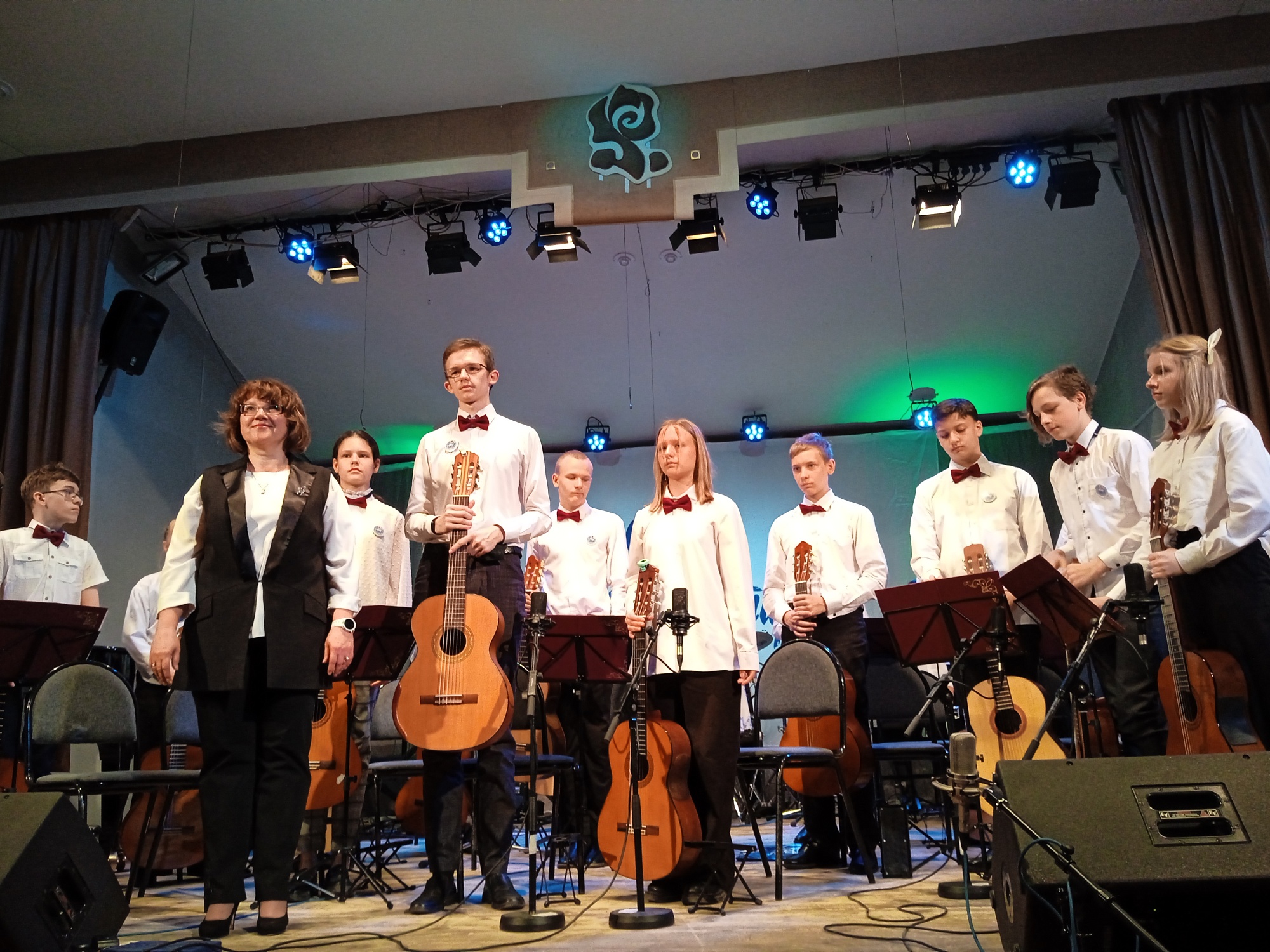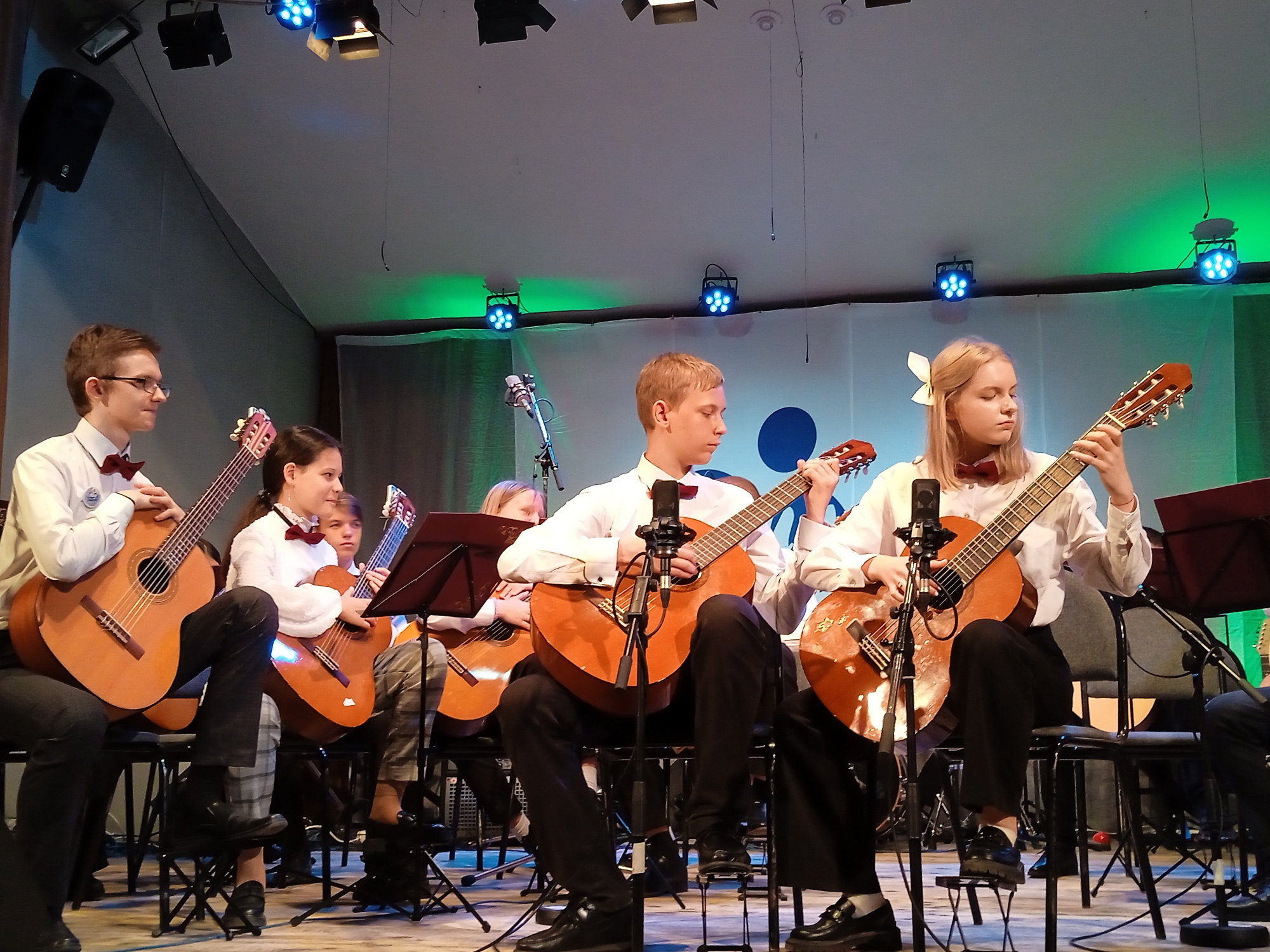 На сцену выходили гитарные и смешанные ансамбли и солисты. Кроме того, ученики выступали вместе с педагогами. В основе этого концерта – творчество классиков гитарного искусства. Звучали произведения советских и современных композиторов, обработки эстрадных и народных песен.