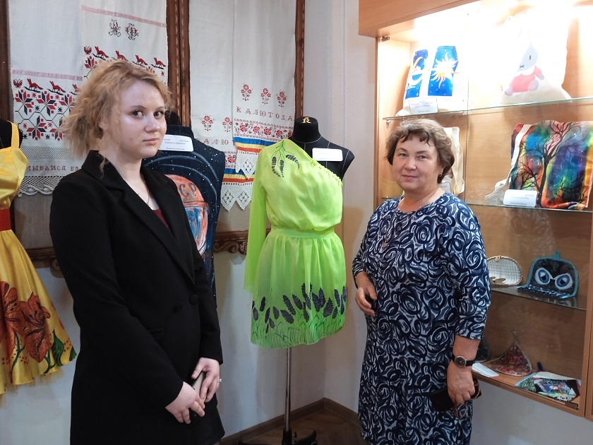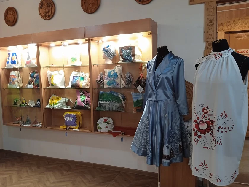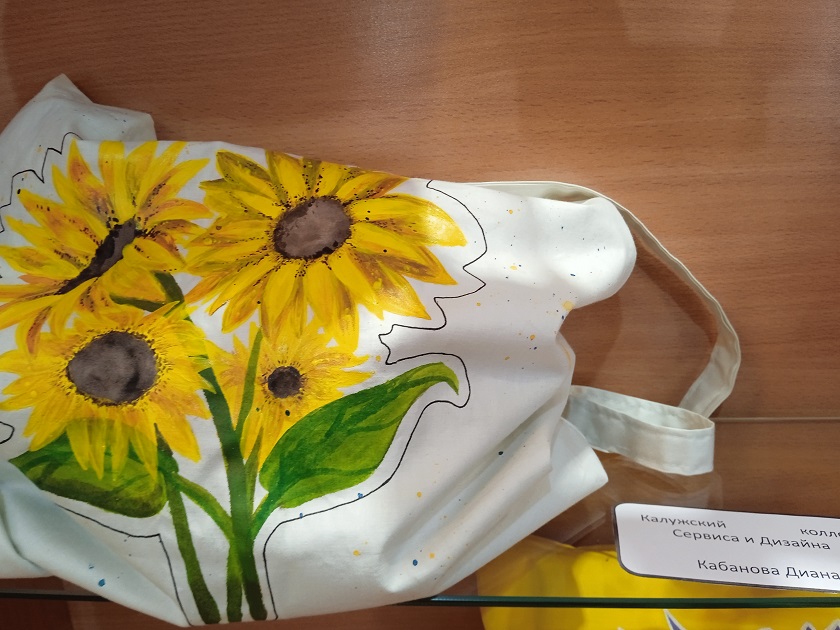 К экспонированию представлена одежда с росписью – платья, платки, шапки, а также мягкие игрушки, шопперы и предметы кухонного обихода. Отдельные работы посвящены теме космоса и Калуге. На джинсовом жилете, например, можно увидеть портрет Гагарина, а на шопперах – калужские достопримечательности, в том числе Каменный мост. Каждый из молодых дизайнеров только начинает искать свой стиль, вырабатывать индивидуальность, поэтому студенческое творчество развивается под руководством педагогов.