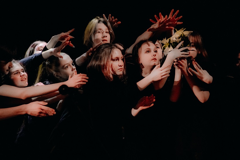 Художественный руководитель школы Мария Тарова рассказала о недавно вышедшем спектакле, который покажут на театральном фестивале в Калуге. Она отметила, что спектакль содержит много пластических элементов и первоначальный текст перевода Шекспира: