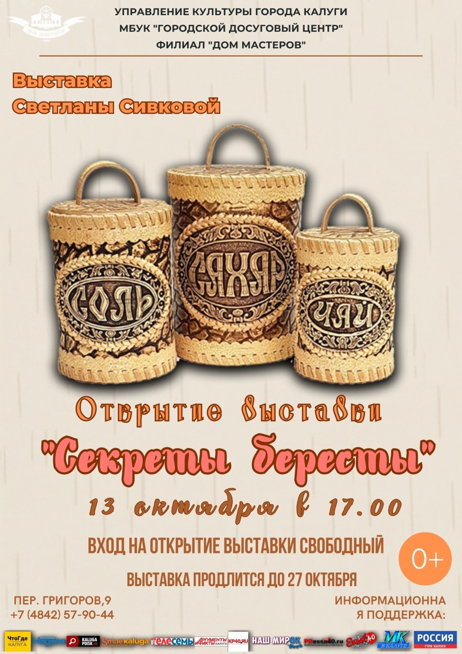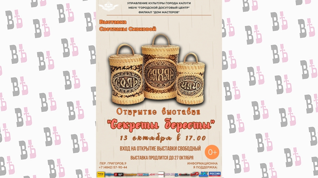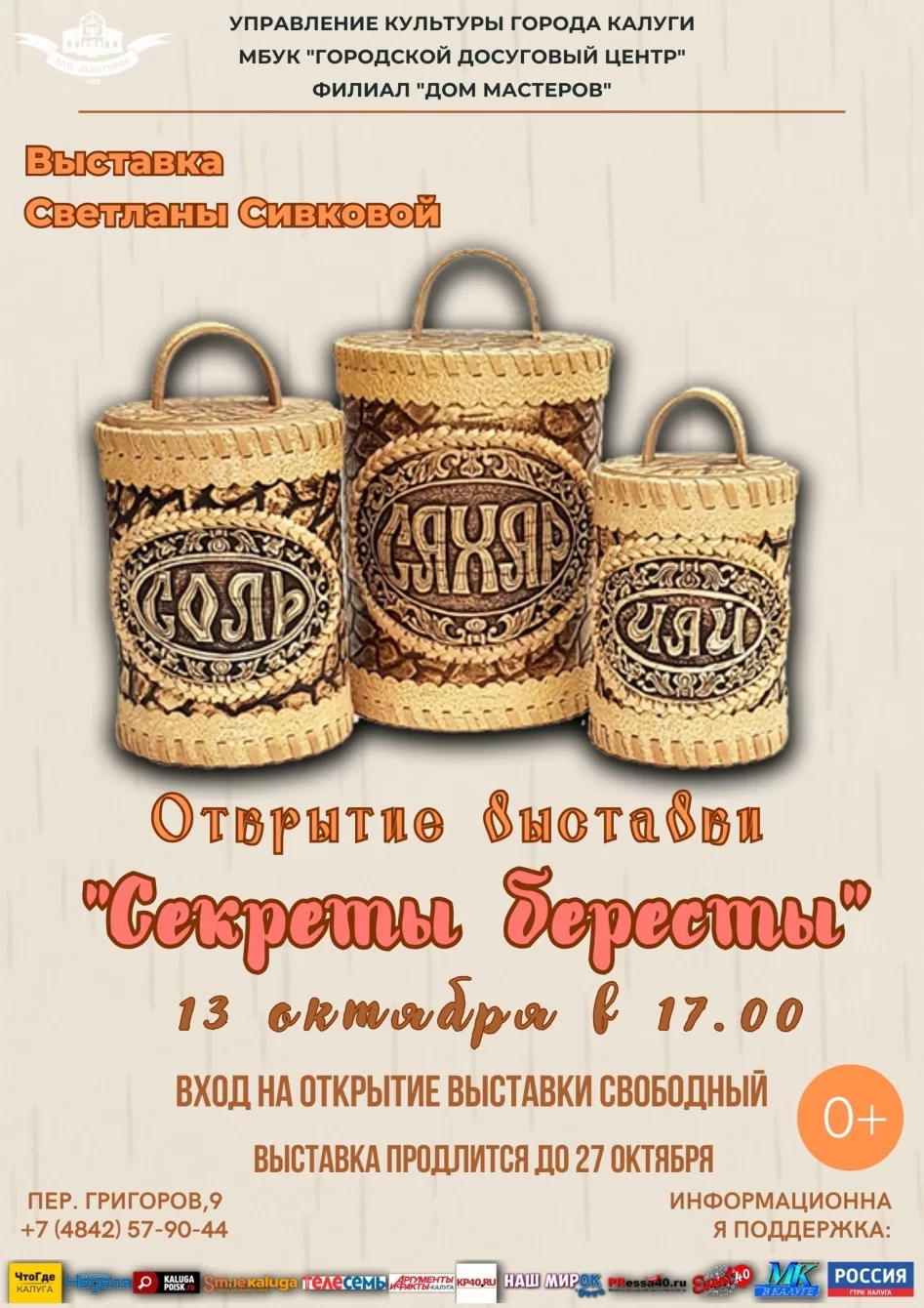 Открытие выставки состоится 13 октября в 17:00 в обновлённой горнице Дома мастеров по адресу: город Калуга, переулок Григоров, дом 9.