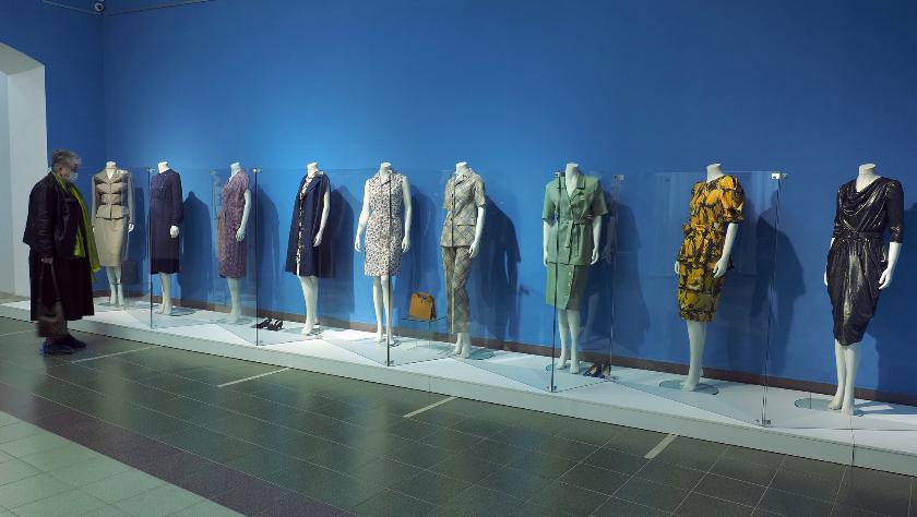 Среди экспонатов – платья и костюмы, обувь, аксессуары, журналы мод.