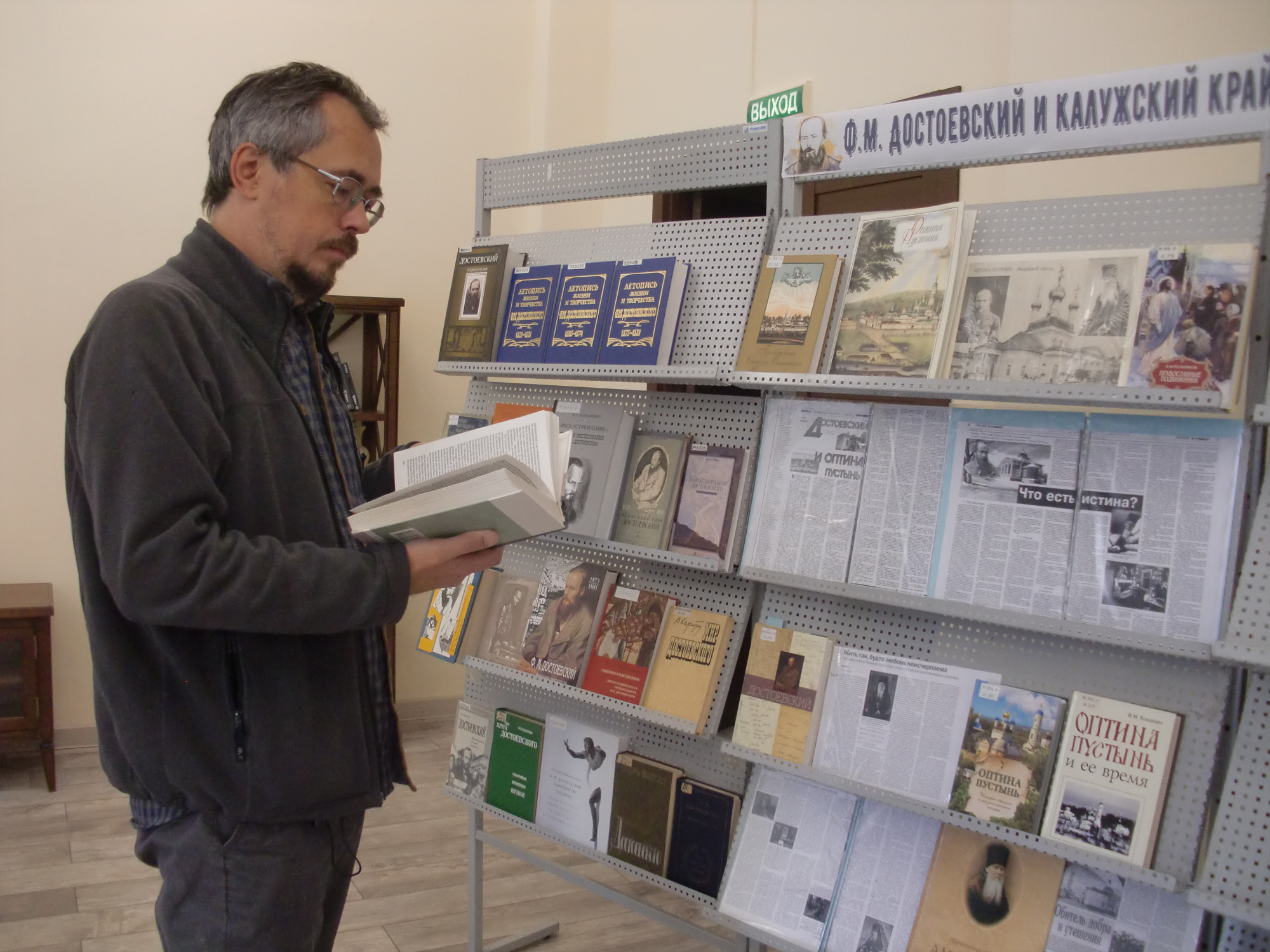 Кроме того, в библиотеке работала тематическая выставка «Достоевский и Калужский край», включившая в себя книги и копии газетных и журнальных публикаций, в том числе о пребывании великого писателя на нашей земле.