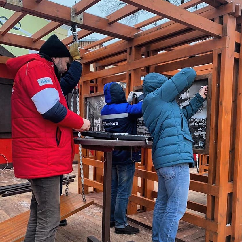 - Многофункциональная конструкция качелей с уличной галереей трансформируется, не теряя своих основных функций на время проведения ярмарки в новогодний фудкорт. Для этого снимаются два из трёх механизмов качелей и четыре стенда. Работы по праздничному оформлению локации в самом разгаре, - рассказал главный архитектор.