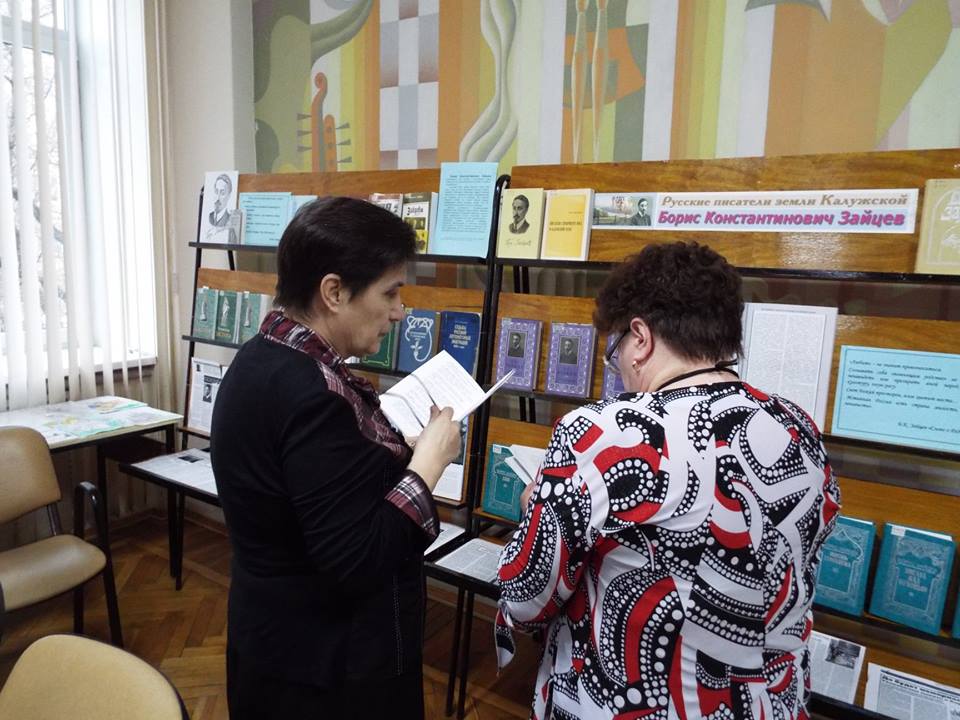 На вечере «Калужский край сквозь таинство страниц» гости познакомитесь с архивными фото и видеоматериалами, посвященными жизни и творчеству писателя, библиографическим обзором, совершили путешествие «Калуга Бориса Зайцева» по следам его произведений с главным библиографом отдела краеведения Центральной городской библиотеки им. Н. В. Гоголя Ириной Маркиной. Неподдельный интерес вызвало выступление писателя и краеведа Юрия Холопова с уточнением по известной акварели Бориса Зайцева "Домик моего учителя в Калуге". Об истории проведения 6-ти Международных Зайцевских чтений в Калуге рассказал начальник отдела Государственного архива документов новейшей истории Калужской области Андрей Прохоровский. С теплотой вспомнили на вечере организатора и вдохновителях литературных чтений в Калуге Евгения Николаевича Зайцева (1929-2005).
