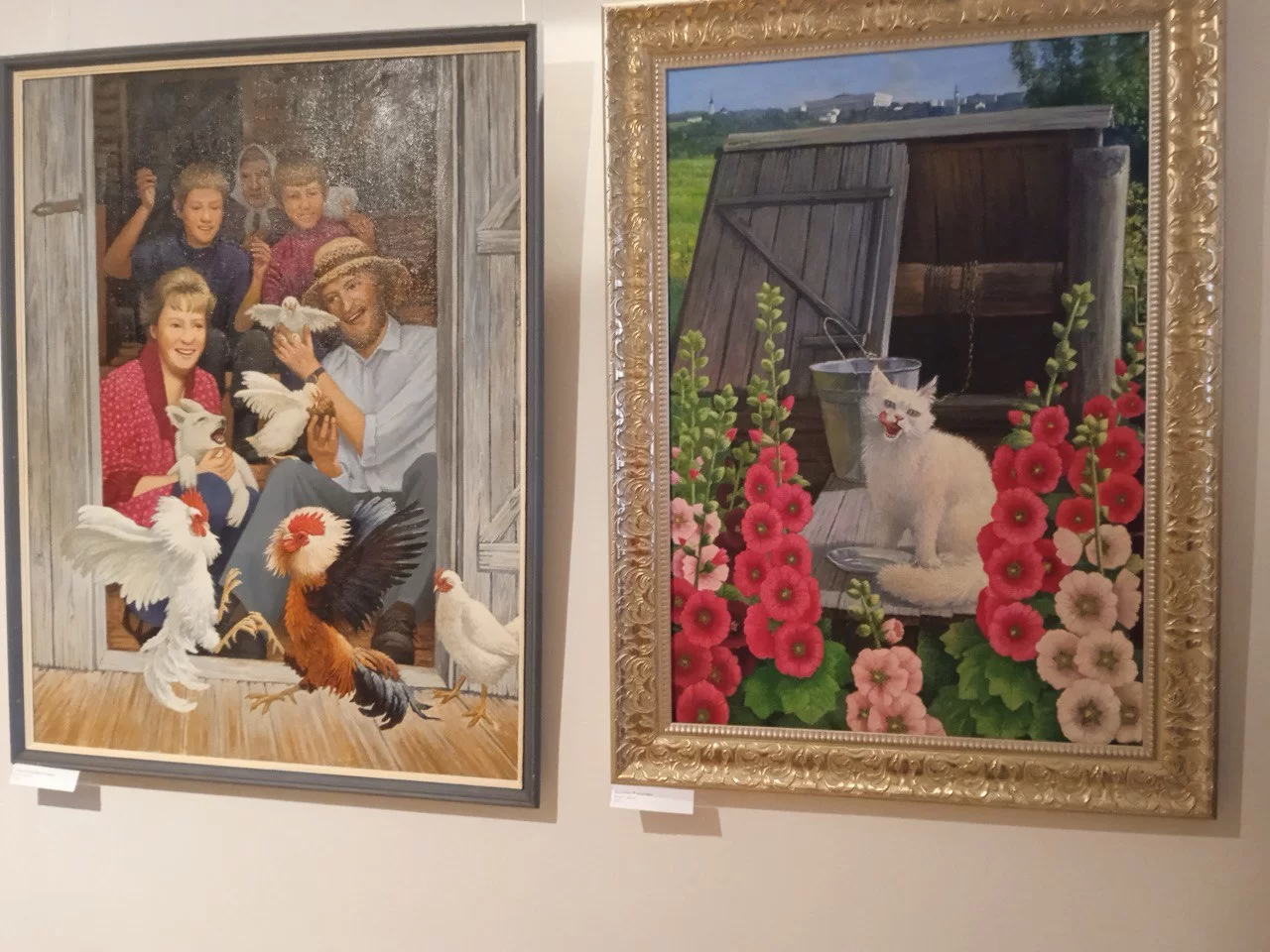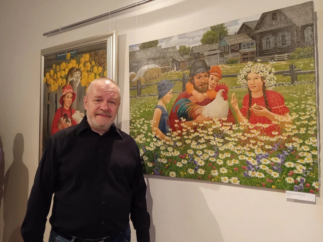 «У Алексея много картин. Он обращается и к военной теме, и к семейной, и к лирической, и к деревенской, пишет животных и цветы»,- рассказала супруга мастера Людмила.