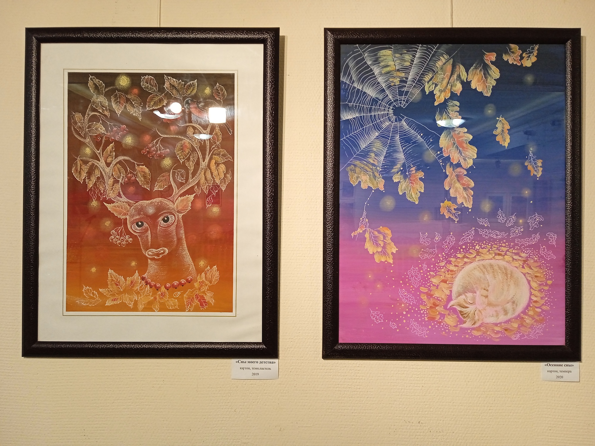 На выставке собраны произведения, посвященные музыке и композиторам, среди которых Шопен, Григ, Свиридов, Прокофьев, Рахманинов. Эти образы где-то более ярко, где-то между делом переданы через природу, ее великолепие. Есть здесь и серии работ, проникнутых философией, – посвящения Марине Цветаевой и Леониду Леонову. Зрителям представлен разный диапазон эмоций. Также глазами художника мы видим мир детства с его цветными снами, сказками и большими мечтами – эти картины, написанные в технике пастели, наполнены особым теплом и очарованием.