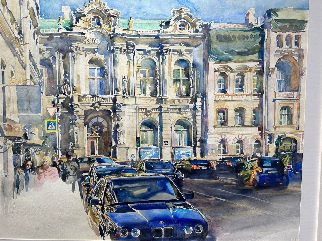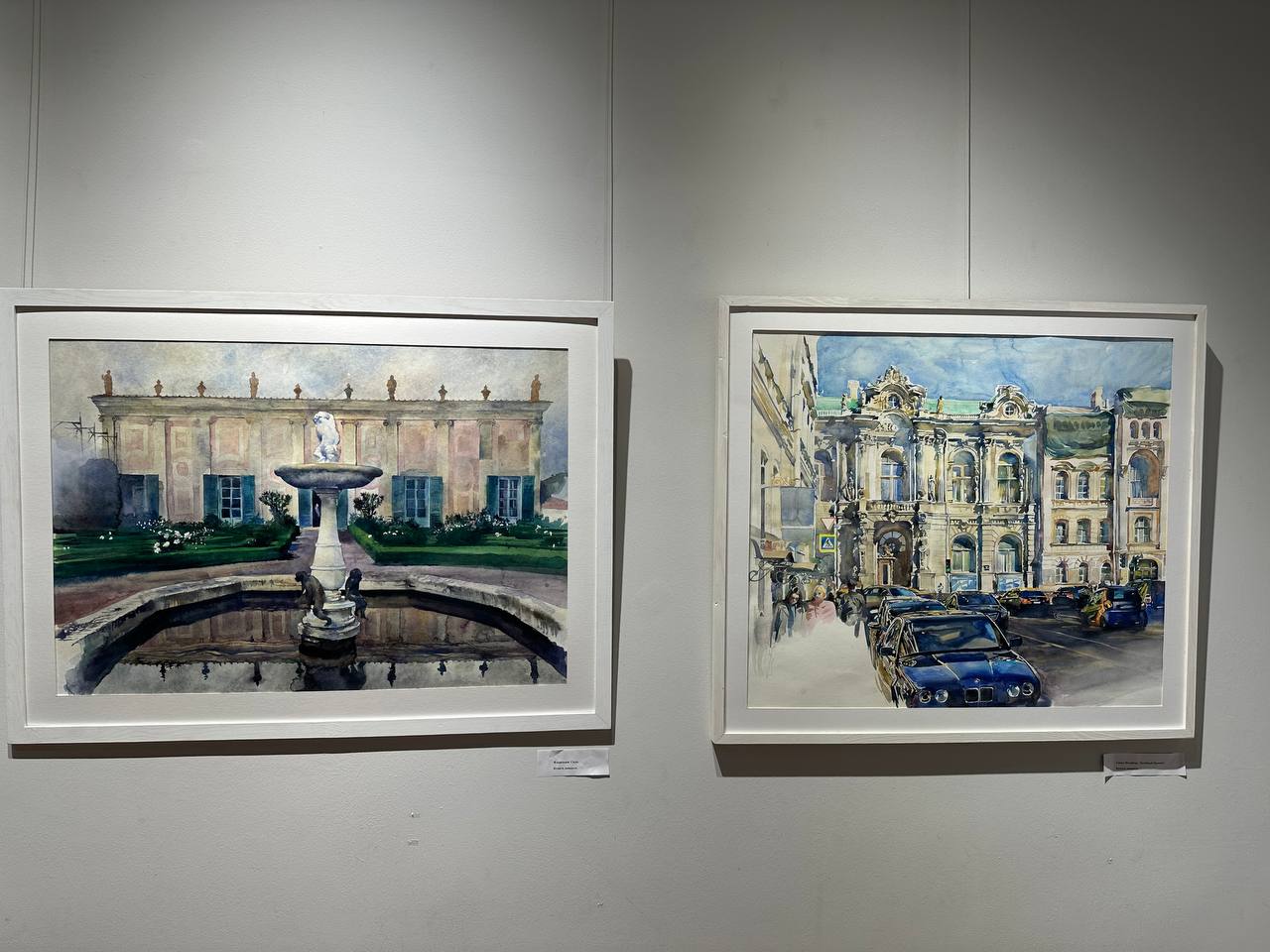 В экспозиции представлены акварели и архитектурная графика. На многих картинах запечатлены улочки Санкт-Петербурга, Люксембурга, Флоренции и других европейских городов.