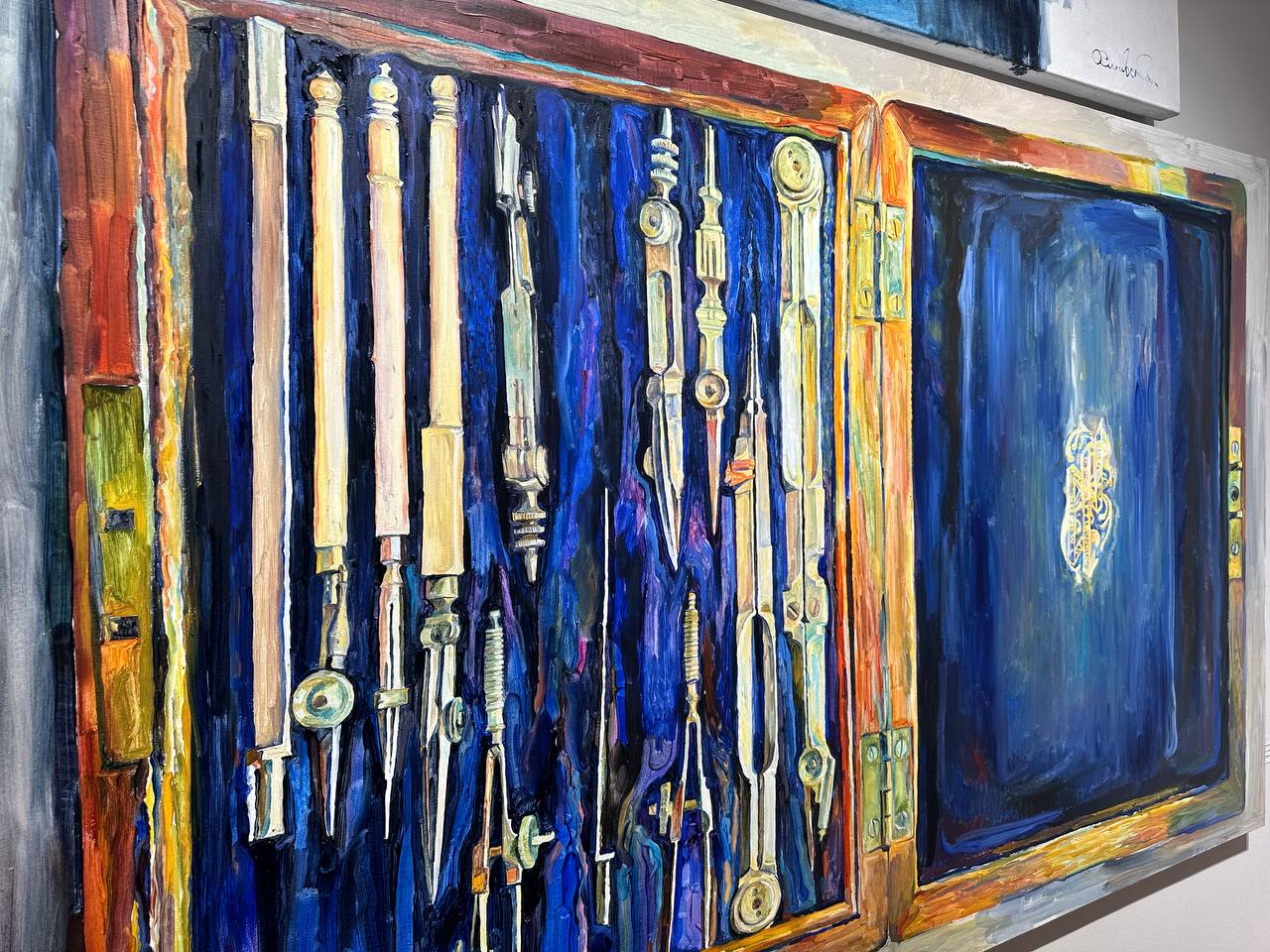 Вернисаж выставки неслучайно состоялся именно у полотен, на которых изображена большая хрустальная люстра, готовальня архитектора Синявского, фарфоровые статуэтки прекрасных богинь. Всё это - детские воспоминания московской художницы Ольги Синявской, которые на выставке переплетаются с новыми яркими эмоциями, которые Ольга приобрела во время путешествий.