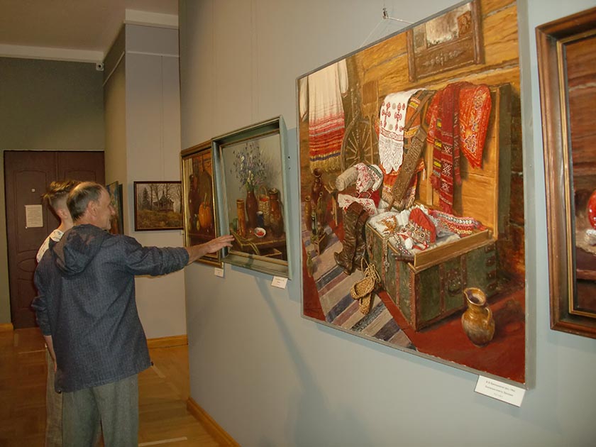 В экспозиции представлено около ста картин. Большинство из них посвящено нашему краю. Виктор Красильников воспел в своих полотнах русскую глубинку – Козельск, Боровск, Тарусу, Малоярославец, Ульяново. А еще – Владимир и Суздаль. В них тонкая лирика природы, неспешность провинциальной жизни и жемчужины архитектурного наследия. Все его творчество пронизано любовью к Родине. Без пафоса. Не кричаще. И пронзительно правдиво. К примеру, с болью в сердце Виктор Владимирович «рассказывает» о том, что разрушаются, гибнут уникальные исторические дома, построенные столетия назад – горькая неизбежность времени. Некоторые такие «приговоренные» остались только на его картинах. И интерьеры деревенских изб – беленые печи, домотканые половики, самовары на столе, яркие рушники.