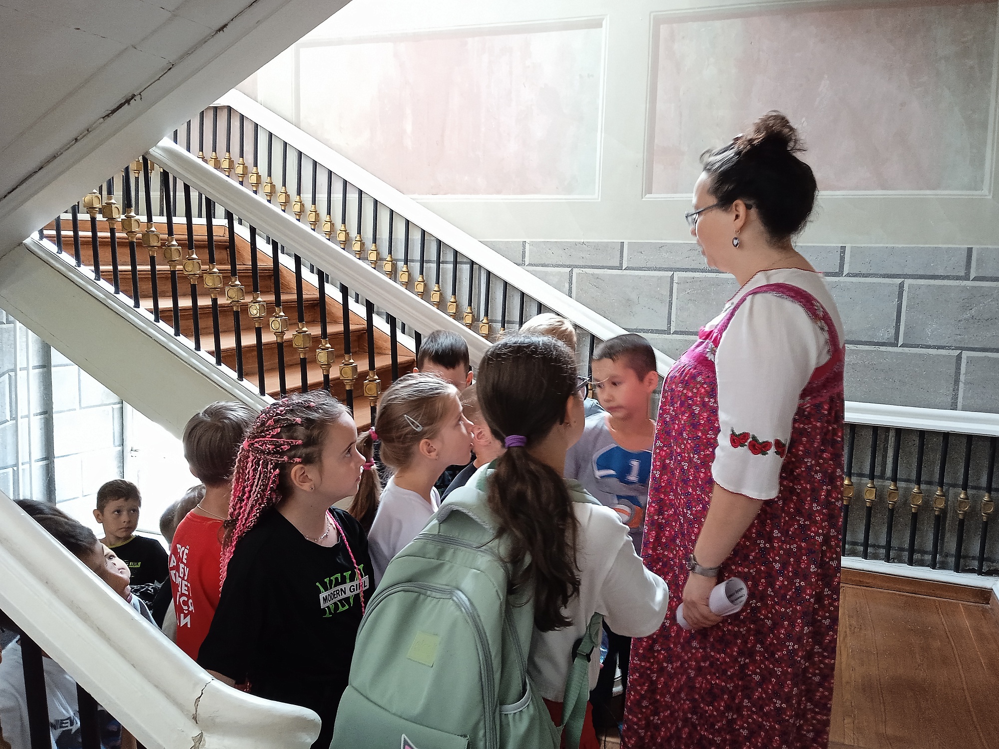 В образе прислуги хозяина дома – девушки Дуняши – занятие провела Любовь Казакова, директор Музейно-краеведческого комплекса «Усадьба Золотаревых». Своих гостей она встретила на парадной лестнице вопросом «Что такое счастье?». У каждого оно оказалось свое. Для кого-то это семья и родители, которые всегда рядом. Для кого-то – мир во всем мире. А кто-то счастье видел в новом купленном мобильнике.