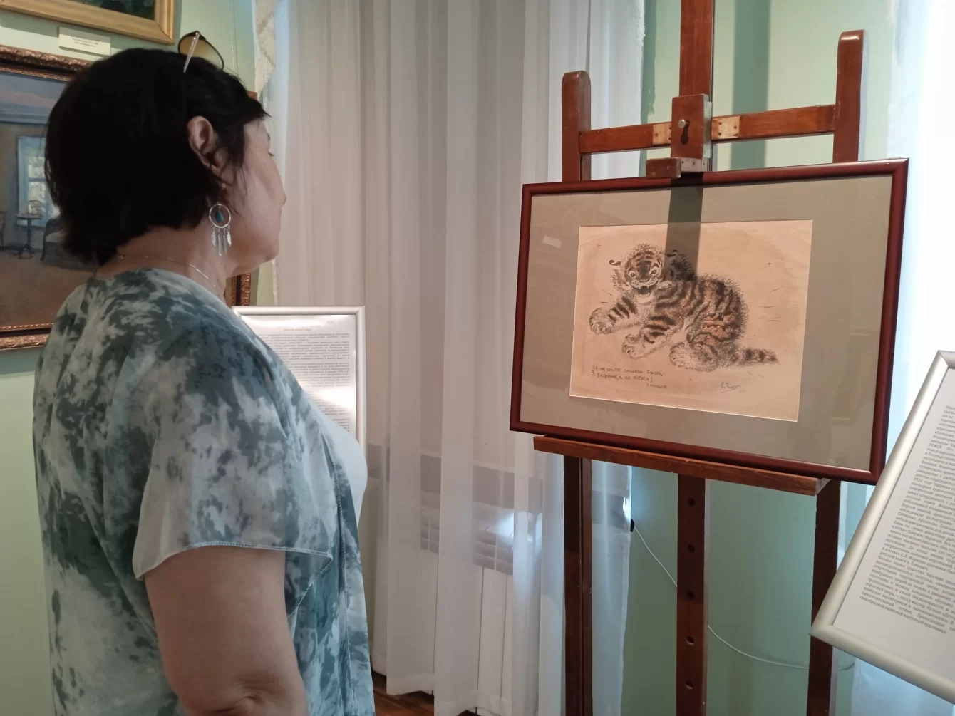 «Евгений Чарушин очень любил свое дело. В детстве он был чрезвычайно любознательным ребенком. В семилетнем возрасте родители подарили ему на день рождения собрание из нескольких книг о животных, которыми он пользовался до конца жизни. Это для него стало своеобразной энциклопедией. Иллюстрации, которые были написаны Евгением Ивановичем к произведению Маршака «Детки в клетке», считаются самыми лучшими работами, а тигренок, наверное, самый любимый персонаж. Автолитография «Тигренок» издана в 1938 году, в 1947-м по закупке приобретена для нашего художественного музея», - говорит Элла Корнелюк.