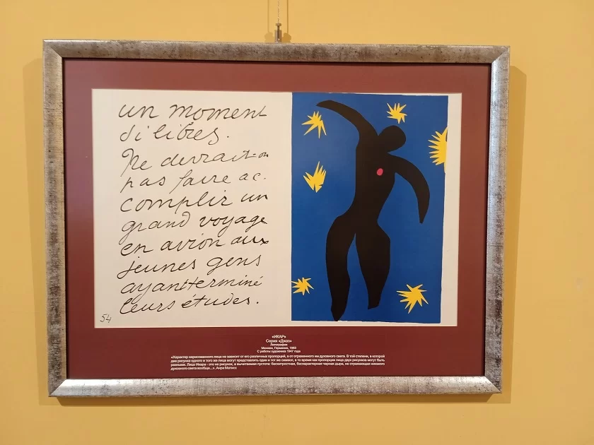 «Он был революционером в живописи. С группой товарищей по творчеству, куда входили Вламинг и Дерен, в 1905 году на Парижском осеннем салоне, Матисс выставил свои работы, которые являли собой нечто совершенно новое в художественном мире. Это было время, когда общество только-только привыкло к импрессионизму, передающему настроение момента, и вдруг появляются художники, начинающие писать ещё более ярко, ещё более звонко, с открытыми цветами, упроченными формами. Конечно, это производит большой фурор. Критики их назвали дикарями. Слово фовизм произошло от французского «fauvism», что значит «дикий», – рассказывает куратор выставки Станислав Баранов.