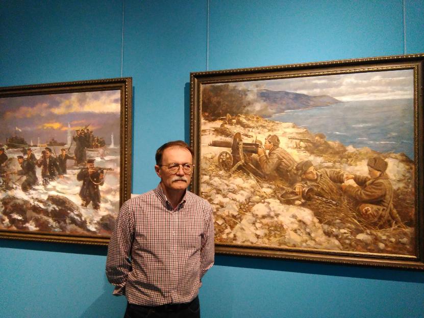 Также он представил свои живописные полотна из серии, посвященной битве за Крым, – «Морской десант. Новороссийск» и «Бой за Балаклаву».