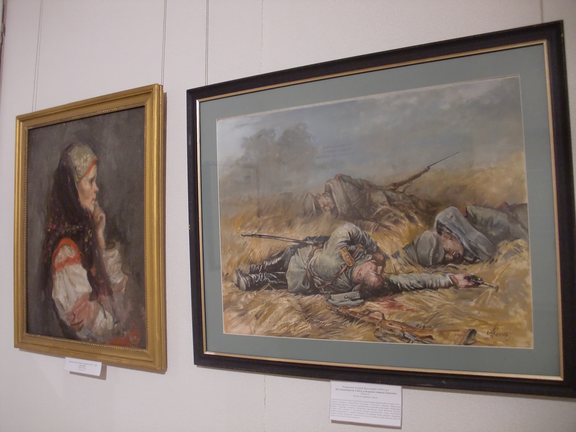 Также в экспозиции можно видеть сцены из жизни крестьянства – крестьянские похороны, «тройки» и т. д. Над этими произведениями работали русские художники XIX века, в том числе Алексей Кившенко. Ему, родившемуся в семье крепостного графа Шереметьева, как никому другому была близка данная тема, но своим талантом Алексей Данилович снискал славу художника-баталиста (он изображал некоторые эпизоды Русско-турецкой войны 1877 – 1878 годов), стал профессором Академии художеств.