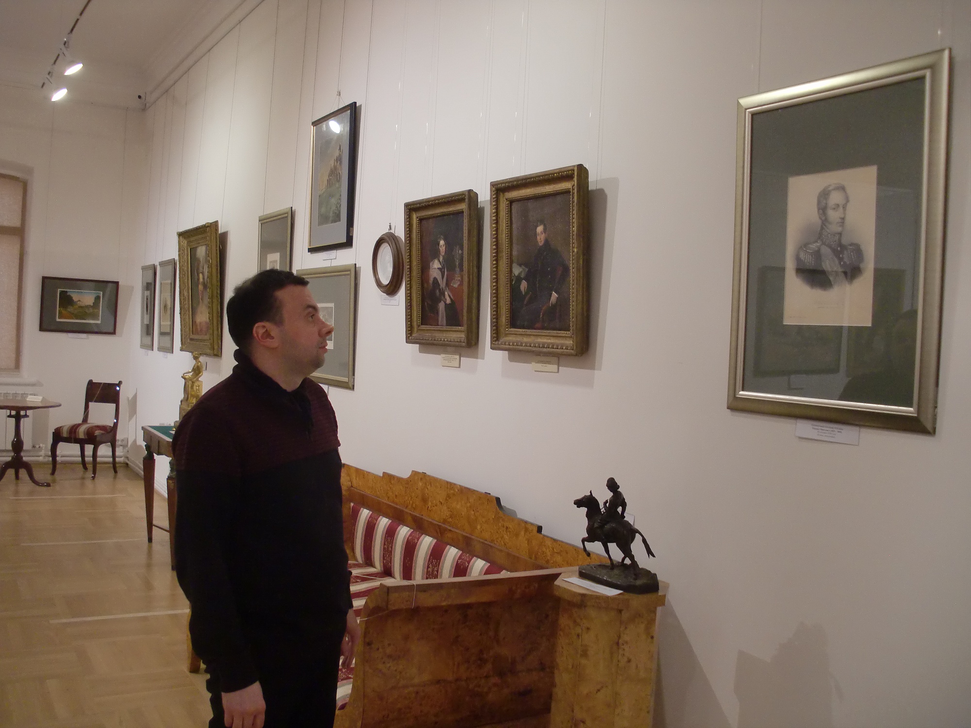 Кроме того, в зале созданы интерьерные уголки, «оттененные» старинными часами и небольшими бронзовыми статуэтками. В них собрана мебель эпох барокко и классицизма. Такие консольные столики и стулья украшали дворянские усадьбы – выставка затрагивает тему дворянства, служившего опорой власти. А на стенах – портреты четы Валуевых, образованнейших людей своего времени, которые участвовали в жизни России, занимались благотворительностью, делали военную карьеру. Не обойдена на выставке и тема войны 1812 года. Интересны сцены из военных походов и портреты полководцев Кутузова и Суворова, проявивших себя на защите Отечества. Кстати, портрет Суворова окружен текстом его обращения к русским воинам – «Вы – чудо-богатыри». Такое воззвание воодушевляло людей на подвиги.