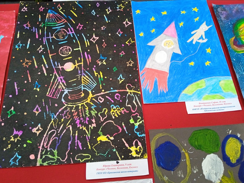 В калужской библиотеке для слепых им. Н. Островского работает конкурсная выставка детского рисунка «Человек. Вселенная. Космос»