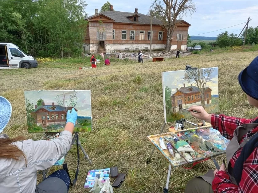 Основным объектом художественных полотен является главный дом усадьбы Ергольских в деревне Клюксы, его фасады и интерьеры. На выставке представлено 35 работ, по одной от каждого живописца. Некоторые картины выставляются впервые, а часть из них уже экспонировались на выставке-форуме «Россия» в Москве и в Инновационном культурном центре в Калуге. Художники-пленэристы в доступной широкому зрителю форме доносят идею о необходимости бережного отношения к культурным памятникам и неразрывности исторического пути России.