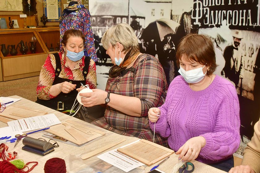 Каждый желающий может заправить бердо и начать плести свой уникальный пояс с неповторимым узором под пристальным вниманием мастера.