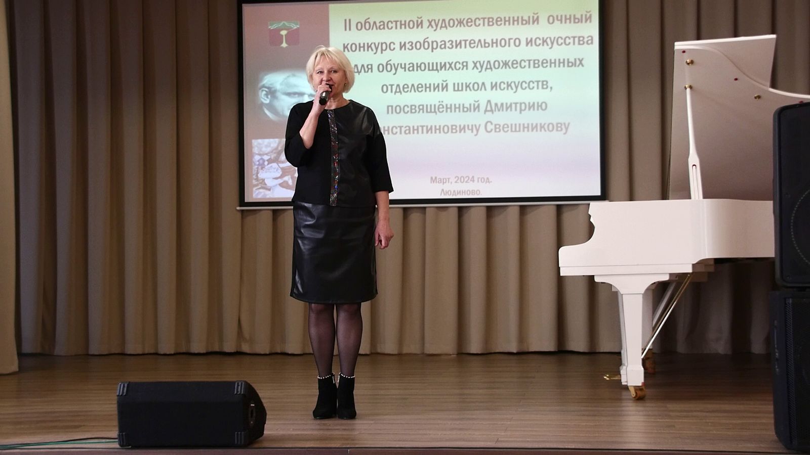 Всех гостей поприветствовала завотделом культуры района Инга Макарова и поблагодарила областной Дом народного творчества и кино «Центральный» за поддержку значимого проекта. Директор школы искусств Людмила Панасюк напомнила, что конкурс проводится в честь земляка людиновцев, советского и российского живописца и путешественника, члена Союза художников СССР, Народного художника РСФСР, члена-корреспондента Академии Художества России, заслуженного деятеля искусств Дмитрия Свешникова.