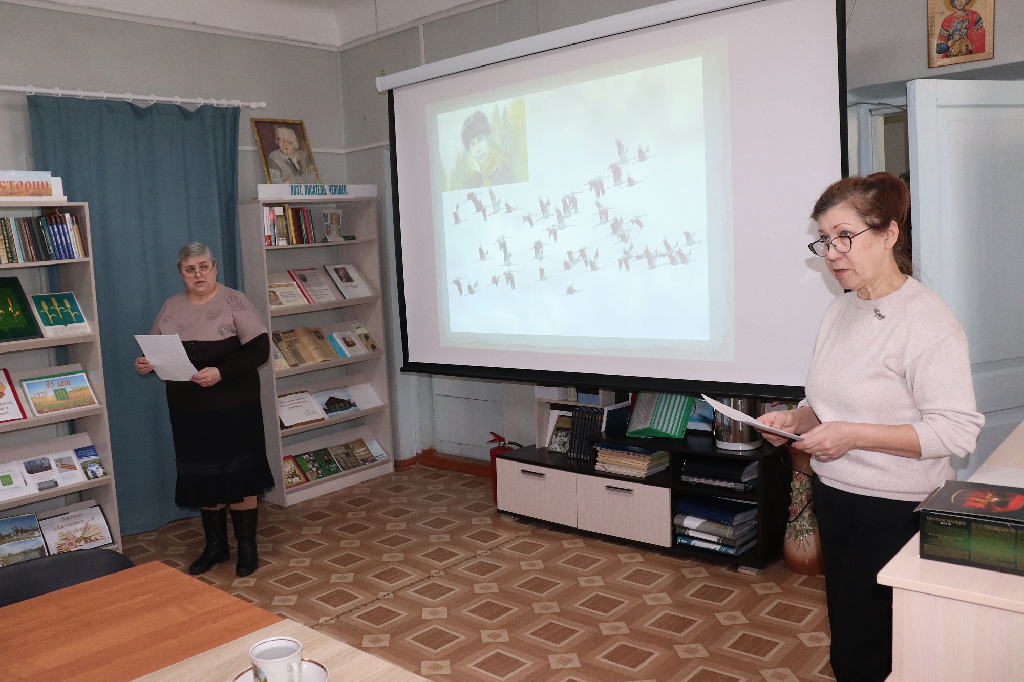 В литературной гостиной собрались почитатели творчества и таланта Николая Рубцова. Сотрудники библиотеки Наталья Ларионова и Наталья Щербо рассказали о жизненном и творческом пути поэта. Их рассказ сопровождался показом слайдов и фильма о Николае Рубцове. Прозвучали песни, написанные на его стихи.