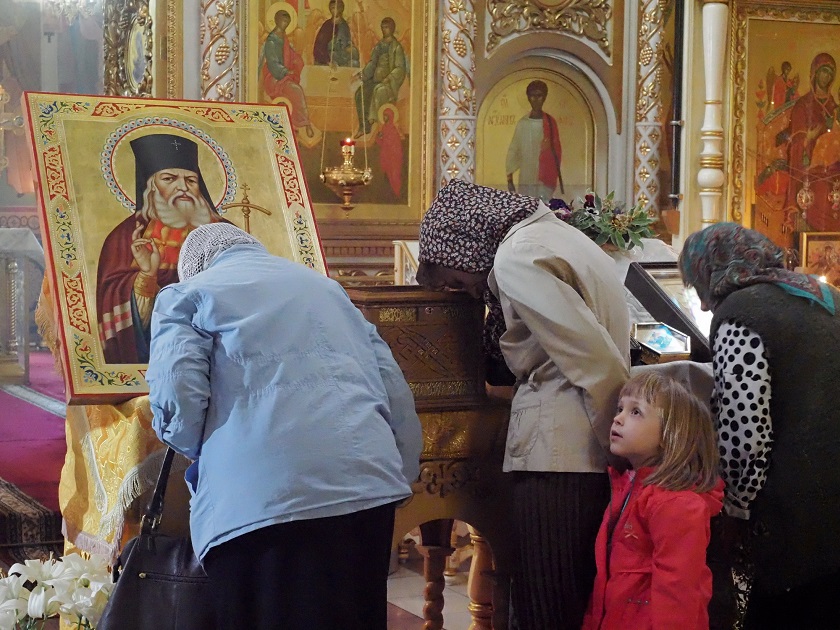 «Мощи святого Луки постоянно пребывают в Свято-Троицком соборе Симферополя. Поскольку сейчас в Крыму проживают в том числе и калужане, наши прихожане, они позаботились, чтобы для храма была написана икона Луки Крымского. Ковчег с частицей мощей был передан сюда. В течение месяца он будет пребывать здесь, чтобы жители города имели возможность поклониться этой великой святыне, и также ковчегу с частицей мощей Нектария Эгинского. Несмотря на то, что это святой греческой церкви, в последнее время он почитаем русским народом, потому что и святой Лука, и святой Нектарий являются врачами. В наше непростое время людям особенно нужна духовная поддержка. После периода самоизоляции, после того, как кто-то переболел, испытал на себе все тяготы, связанные с коронавирусной инфекцией, людям нужна помощь святых угодников божьих. Этим святым молятся, когда страдают тяжелыми заболеваниями, в том числе онкологическими», - сказал настоятель храма.