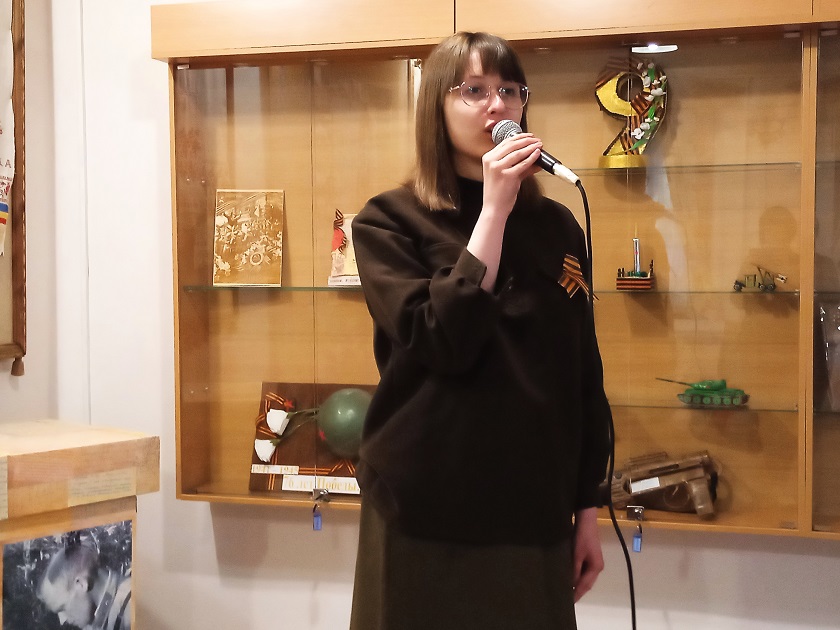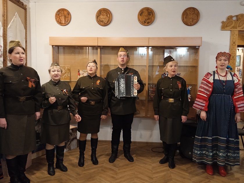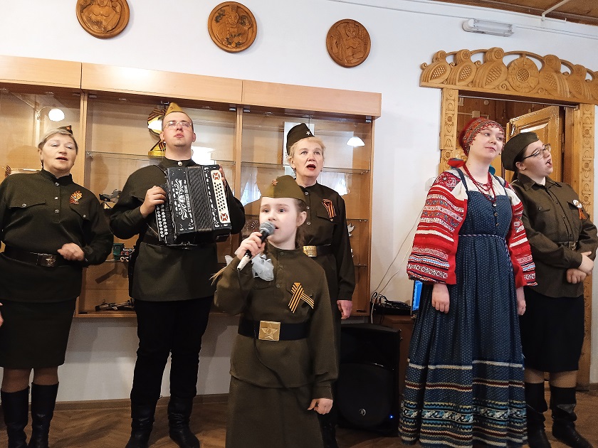 А далее прозвучали «В землянке», «Катюша», «Синий платочек», «Едут по Берлину наши казаки», «День Победы» и другие песни.