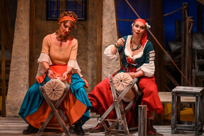 Персонажи спектакля — простые рыбацкие семьи. Непосредственные и горячие, они готовы вспыхивать в любую минуту. Не то сказал, не так посмотрел — и уже в ход идут резкие слова, а то и острые предметы. И это нормально для южан-средиземноморцев: ведь каждый миг их жизни окрашен яркими страстями. Поэтому все перепалки в конечном итоге ведут к