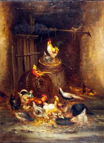 С 14 января в Калужском музее изобразительных искусств откроется выставка двух картин французского художника-анималиста Клода Мари Гийемине с одинаковыми названиями «Птичий двор».