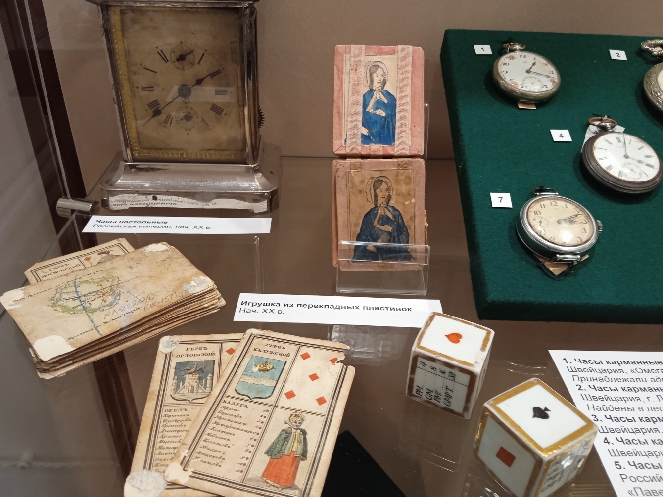 Выставка недаром называется «Делу время, потехе – час». На ней представлены часовые механизмы от дамских часиков с красивыми браслетами до каминных и даже солнечных. Часы здесь стали иллюстрацией времени и эпохи.