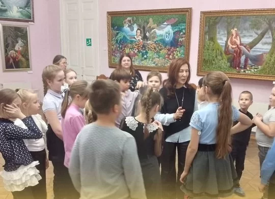 Автор работ - калужский живописец Алексей Голубев. Вместе с супругой Людмилой он присутствовал на открытии выставки, первыми посетителями которой стали ученики Полотняно-Заводской школы №1.