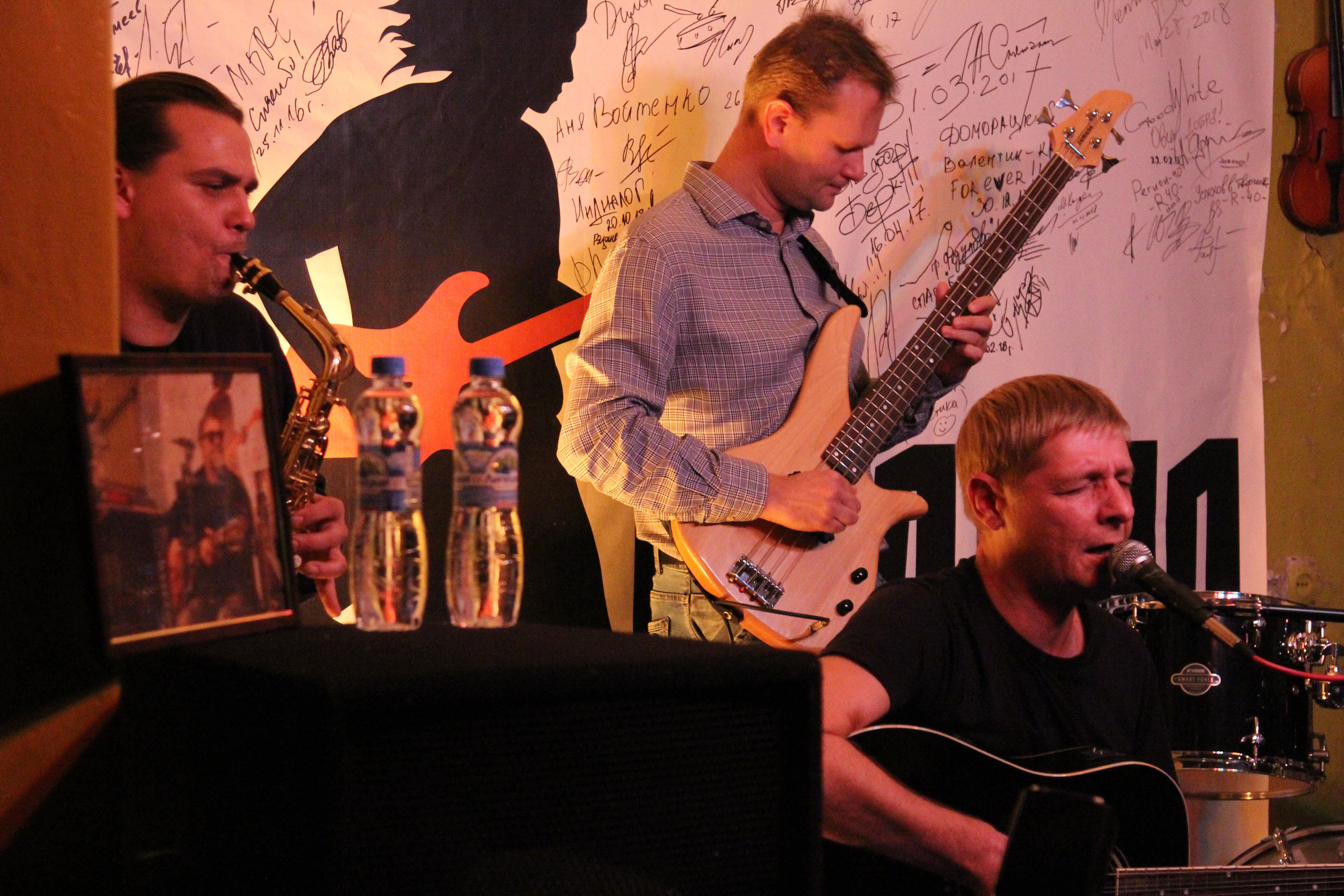 - Тогда было много групп, в названиях которых присутствовали точки, когда часть слова сокращалась и ставилась точка. Мы начинали как «Транспозиция». Название появилось отчасти, потому что вели ночной образ жизни, а потом его по тогдашней моде сократили, - рассказал Алексей Макарушкин. – Поначалу репетировали в ТЮЗе, одно время играли «электричество», последние лет пять акустику. Она о том, чем мы живем.