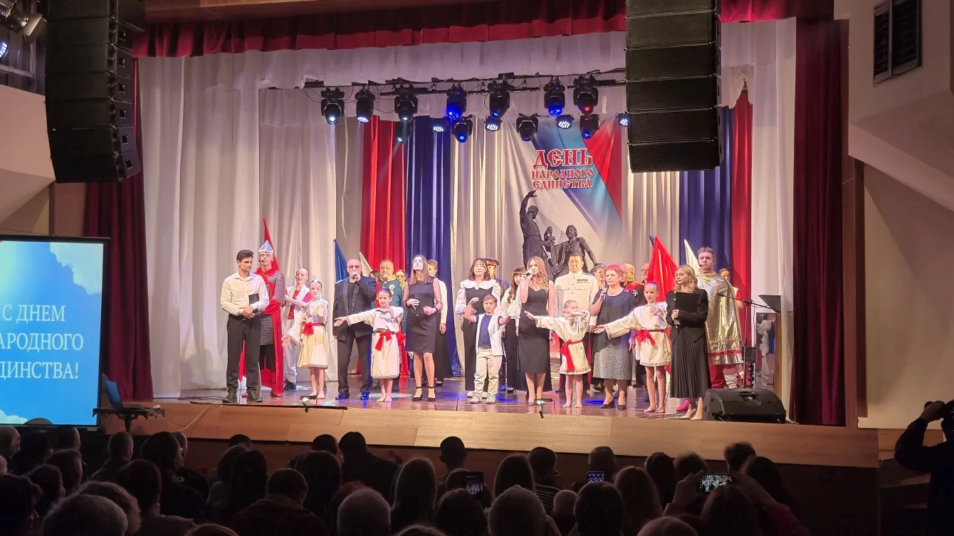 На сцене Дворца культуры выступили детские и взрослые творческие коллективы муниципалитета. Каждый концертный номер напоминал зрителям о том, что Россия – многонациональная страна, а люди, живущие в ней, во все времена объединилясь и противостояли врагам, вставая на защиту Родины в единый строй.